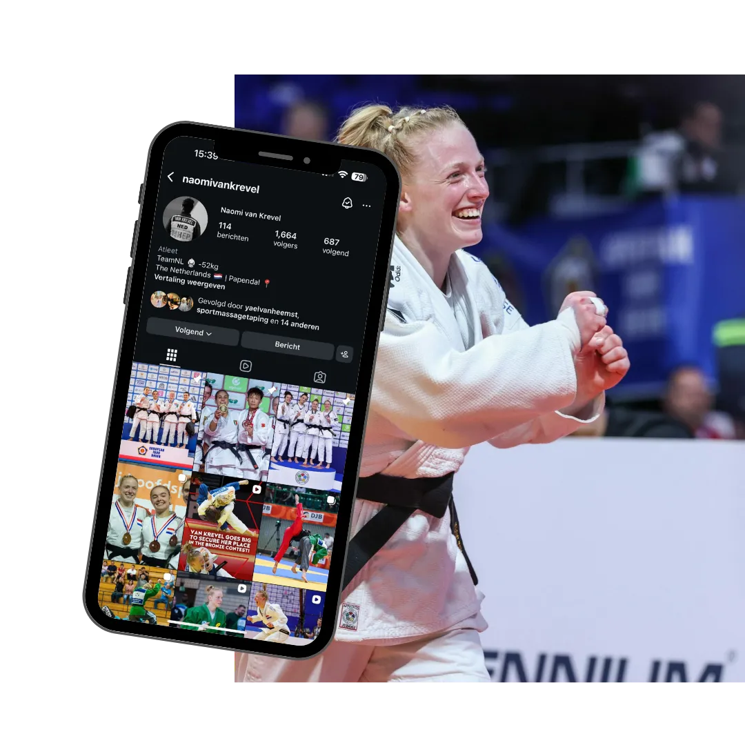 Via mijn social media neem ik volgers mee in mijn leven als topsporter. Ik deel momenten rondom trainingen, wedstrijden en het leven naast de judomat. Mijn content is eerlijk, persoonlijk en gericht op inspireren.